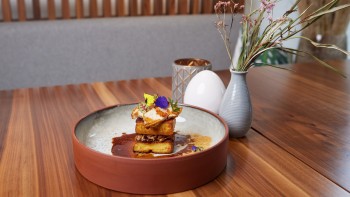 La Cuchaule AOP façon pain perdu au Vacherin Fribourgeois AOP à l'étuvée de pommes Golden au romarin